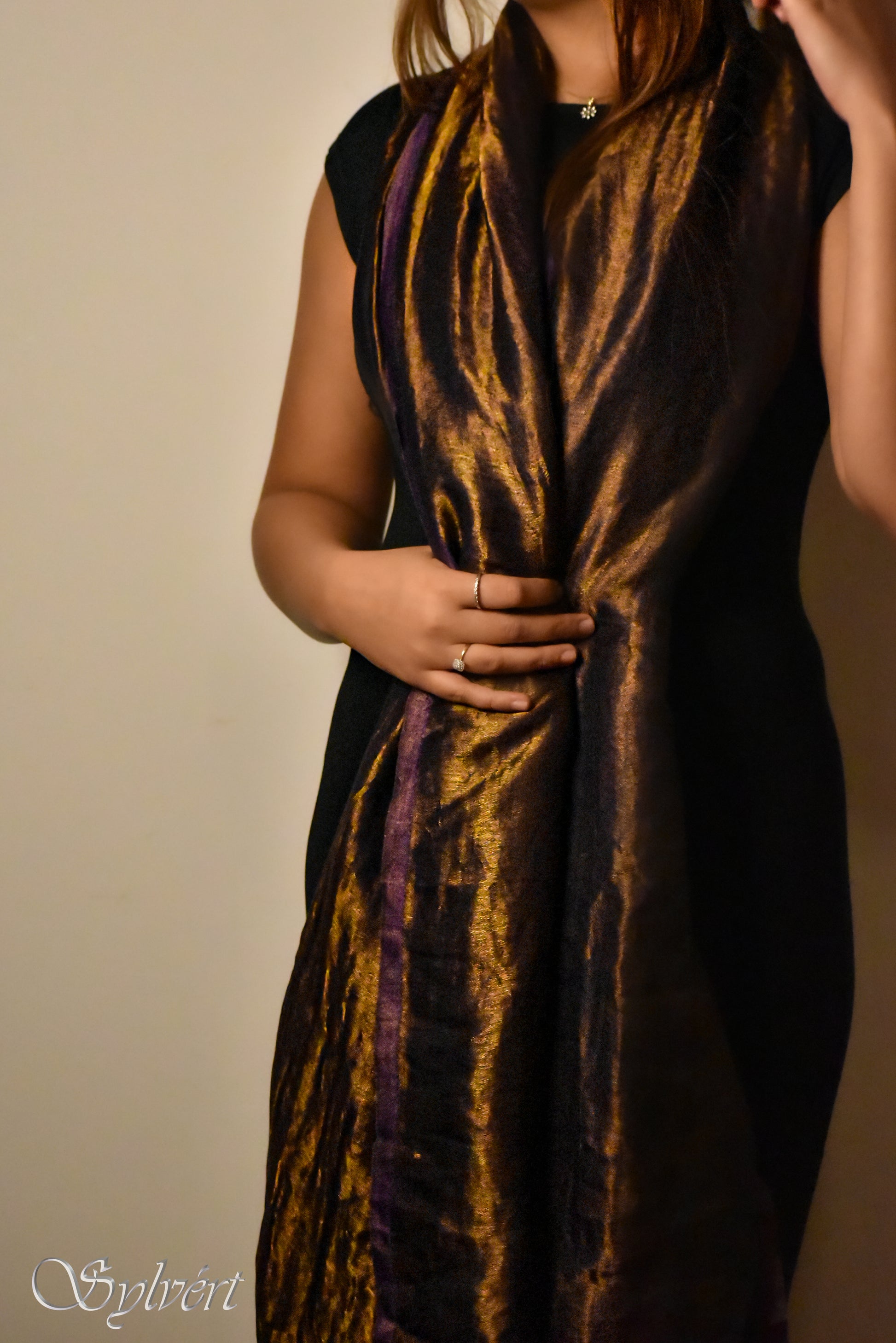 A slow-crafted weave that shifts colour in motion, catching and releasing light with poetic elegance. The surface glows with a quiet radiance, revealing new depth at every fold and turn. Designed for collectors of rare textiles and evenings of deliberate glamour, it brings couture-level craftsmanship into the realm of the intimate.