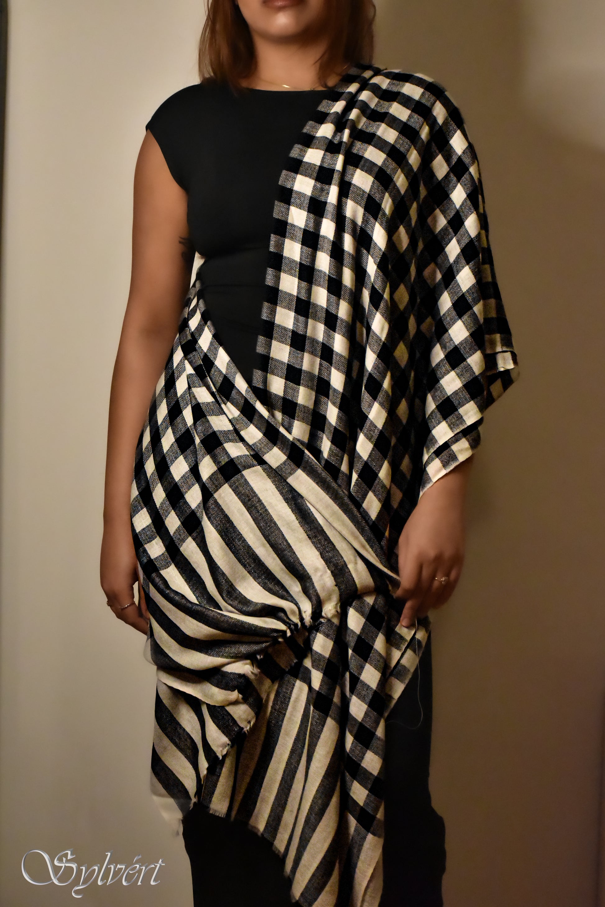 Unembellished and uncompromising, this piece is designed for those who understand that true refinement does not announce itself. It glides over the shoulders like liquid warmth, light as breath, with a tactile finish that speaks to centuries of handloom heritage. There is no ornamentation, no embroidery, no noise - only the quiet authority of exceptional fibre, woven with discipline and dyed with precision.